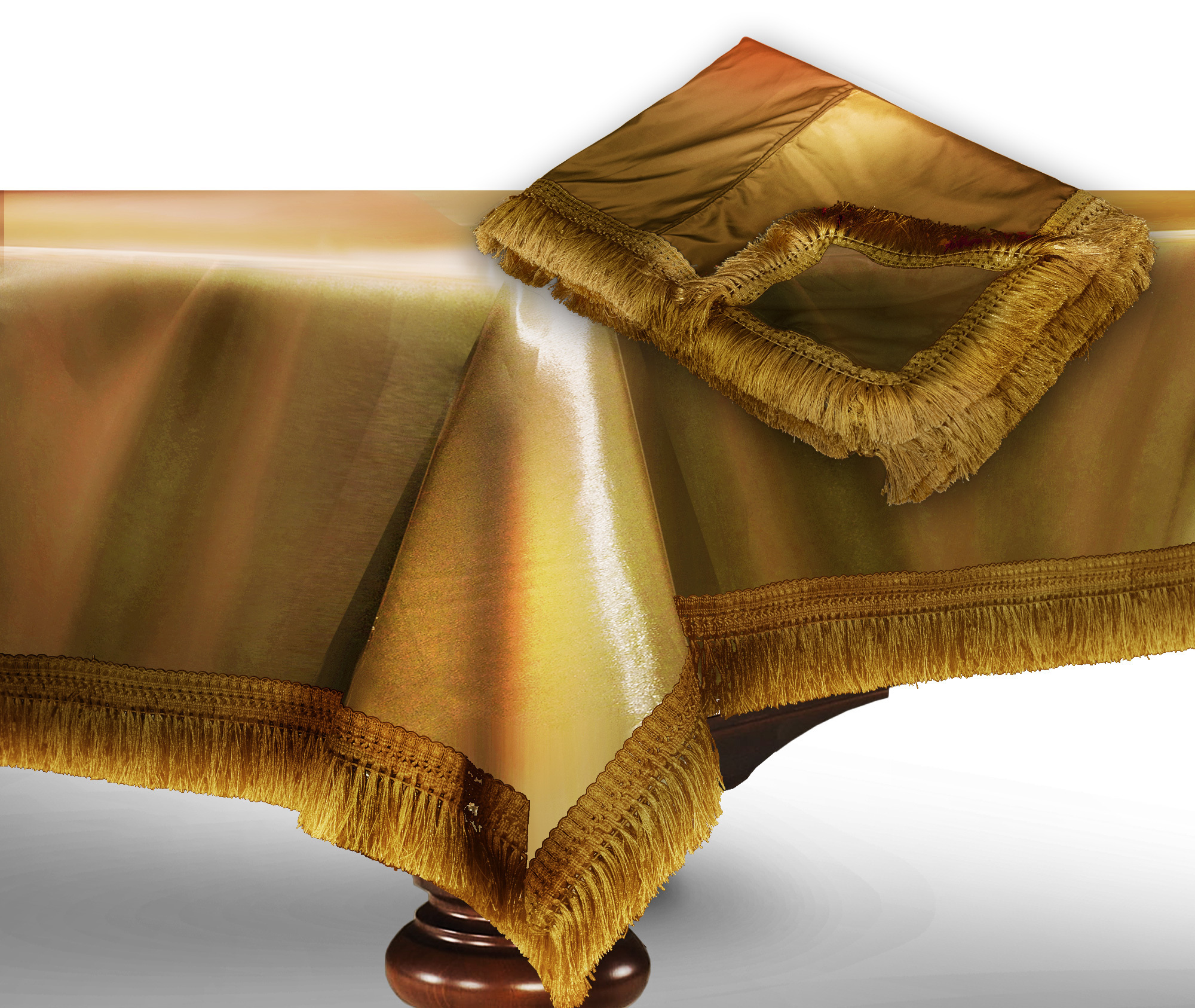 Чехол с влагостойкой пропиткой, обрамленный бахромой, надежно предохраняет бильярдный стол от внешних воздействий.. Стильный декор, практичный материал украшенный золотистой бахромой - замечательно впишется в интерьер бильярдной комнаты, ресторана или клуба. Пропитка придает ткани водоотталкивающие свойства, делает ее более плотной и гладкой. Чехол выкроен с таким расчетом, чтобы спускающаяся с поверхности стола ткань надежно закрывала и борта, и лузы, и часть опоры. Предназначен для защиты сукна и стола от неблагоприятных внешних воздействий. В первую очередь, от пыли, которая со временем впитывается в сукно, ухудшая его игровые свойства.