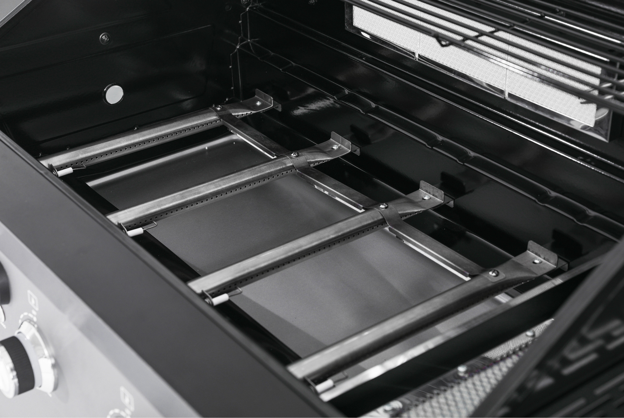 Газовый гриль PRIME PRO 610 – это большой газовый гриль премиального уровня, настоящая находка для любителей и ценителей приготовления барбекю на свежем воздухе. Объемная площадь жарочной поверхности дают простор для кулинарного творчества, обеспечивая бережное приготовление любимых блюд, сохраняя природные вкусовые и полезные качества еды. Расширенный функционал и высокие технические характеристики причисляют модель к эталонному уровню товаров BBQ отрасли. Одно из главных преимуществ модели PRIME PRO 610 – это равномерное распределение тепла, которое обеспечивают ряд основных 4-х трубчатых горелок и пятая инфракрасная горелка, расположенная с краю основной зоны приготовления. Инфракрасная горелка разогревается до 800°C и гарантирует идеальную экспресс-обжарку мяса. В данном гриле реализована новейшая система распределения тепла при различных стилях и условиях приготовления – s-Heat! Это собственная уникальная разработка компании Start Grill! s-Heat #40;умный нагрев#41; — система терморегулирования, оптимального распределения и циркуляции высвобождаемого тепла в камере приготовления газового гриля в процессе готовки ваших блюд. В зависимости от выбранного режима приготовления, условий окружающей среды #40;атмосферное давление, ветер, низкие или высокие температуры окружающего воздуха#41; и стиля BBQ, данная система позволяет подобрать оптимальные режимы приготовления, чтобы ваше блюдо получилось бесподобным! Система s-Heat состоит из терморегулирующей пластины специальной формы и крепежа, что позволяет оперативно изменять конфигурацию гриля и настраивать режимы готовки индивидуально в каждом конкретном случае. Гриль в базовом оснащении уже комплектуется электрическим вертелом. Дополнительная задняя инфракрасная горелка станет полезным атрибутом для быстрого запеканияnbsp;nbsp;при использовании вертела. Дополнительная горелка, встроенная в боковой столик, также станет незаменимым помощником в приготовлении любимых блюд. Решетка боковой горелки изготовлена из чугуна. Управление горелками осуществляется с помощью ручек управления, расположенных на главной панели гриля. Ручки управления имеют яркую подсветку, а также индикацию режима работы, меняя свой цвет с синего на красный в положениях вкл. и выкл. В панель управления встроен проектор логотипа Start Grill, этот эффект придает атмосферности процессу приготовления. В крышке гриля установлено специальное жаропрочное стекло, позволяющее вести наблюдение за готовкой ваших блюд. На боковой стенки гриля предусмотрено два удобных аксессуара: это держатель полотенца и лоток для хранения специй и соусов, что неоспоримо скажется на комфорте и удобстве использования гриля. Также на боковом столике лаконично расположились крючки для размещения различных аксессуаров. Для сбора жира предусмотрено два поддона: основной и маленький дополнительный для быстрой очистки. Удобная ниша для хранения баллона позволя...