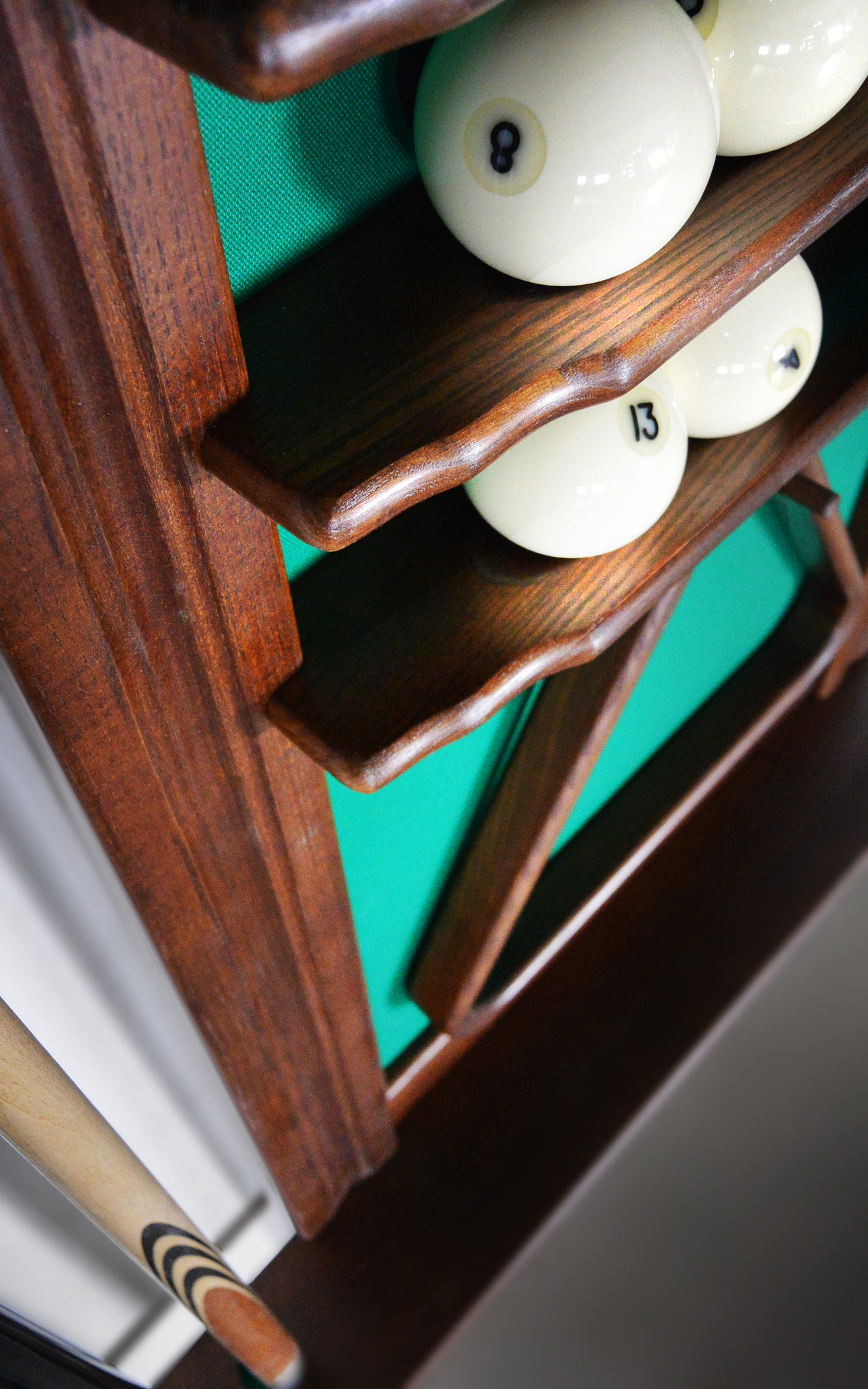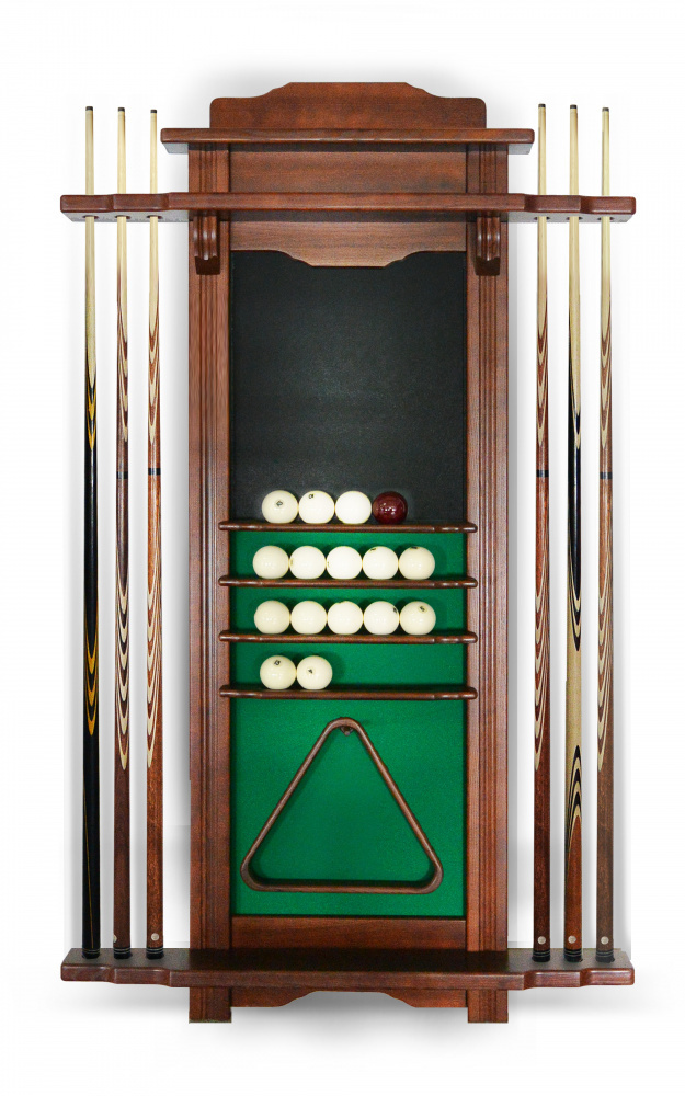 Модель настенная, предназначена для 6 киев, позволяет разместить треугольник, мелки, а также бильярдные шары. Материал сосна. Есть возможность выбрать цвет из палитры Фабрики «Старт» Количество киев: 6 Высота: 1830 мм Ширина: 1080 мм Глубина: 140 мм Материалы: сосна / ясень