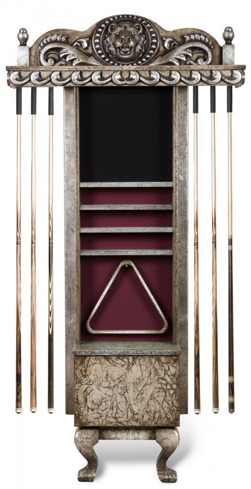 Модель настенная, предназначена для 6 киев, позволяет разместить треугольник, мелки, а также бильярдные шары. Материал клен. Есть возможность выбрать цвет из палитры Фабрики «Старт» Количество киев: 6 Высота: 2345 мм Ширина: 1200 мм Глубина: 300 мм Материалы: клён Выкраска: Авторское патинирование, червленая серебряная поталь