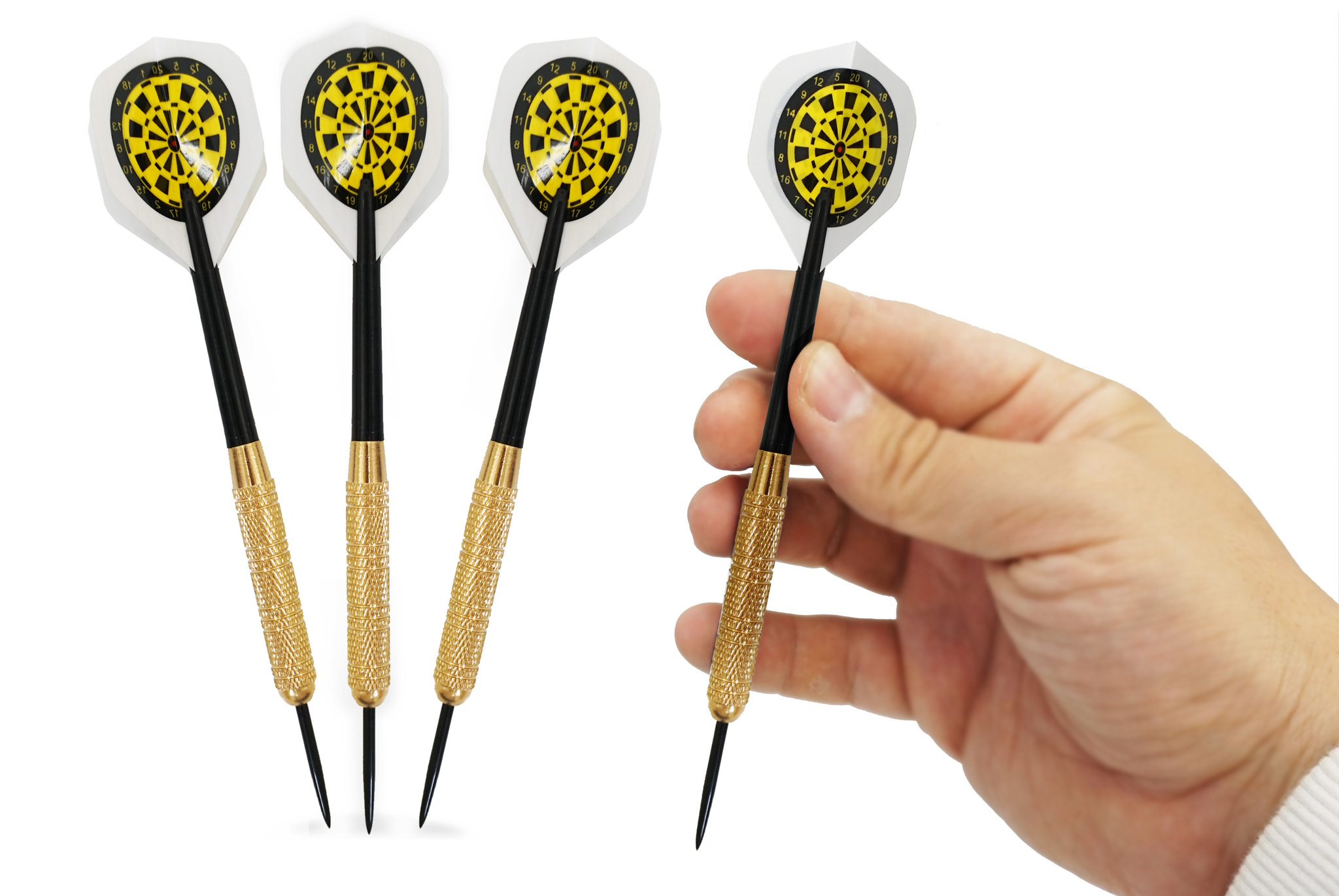 Дротики являются важнейшим элементом для игры в дартс, отnbsp;nbsp;напрямую зависит уровень и качество игры. Комплект дротиков для игры в дартс среднего уровня. Комплект состоит из 3 дротиков весом 18 гр, баррель которых изготовлен из латуни. Латунные дротики являются общедоступным инструментом как для любителей, так и для профессианалов. Пластиковые хвостовики в сочетании с оперением отлично выравнивают дротики в полете. Стальные иглы легко и устойчиво “входят” в мишень. Комплект состоит из 3 баррелей, 3 хвостовиков, 3 оперений. Разборная конструкция дротиков позволяет заменить его хвостовик и оперение по мере изнашивания оборудования.