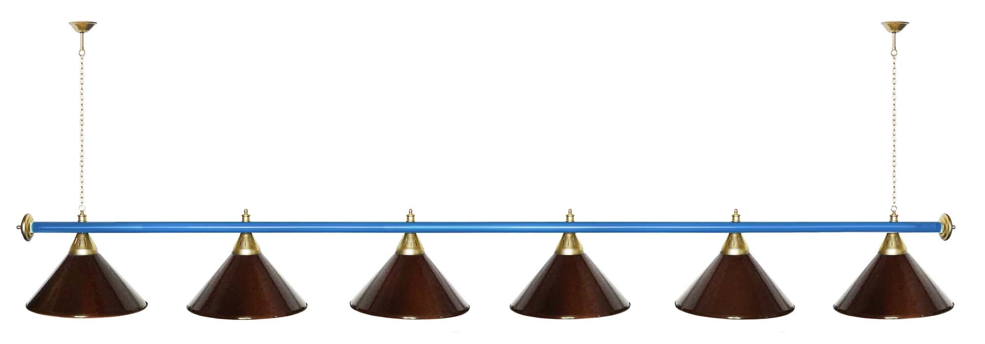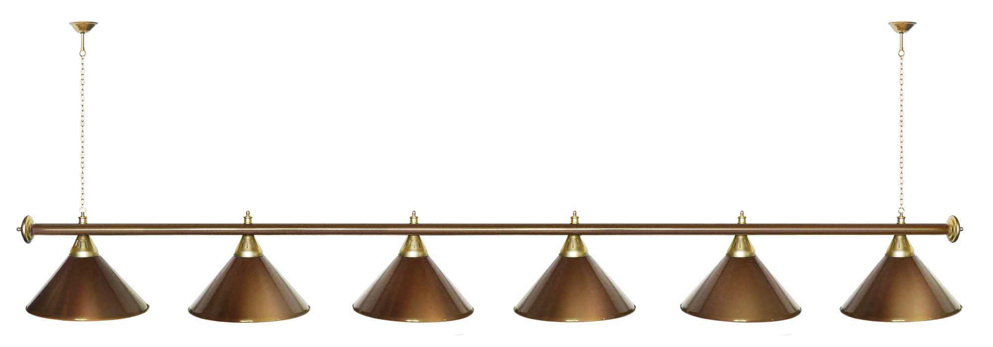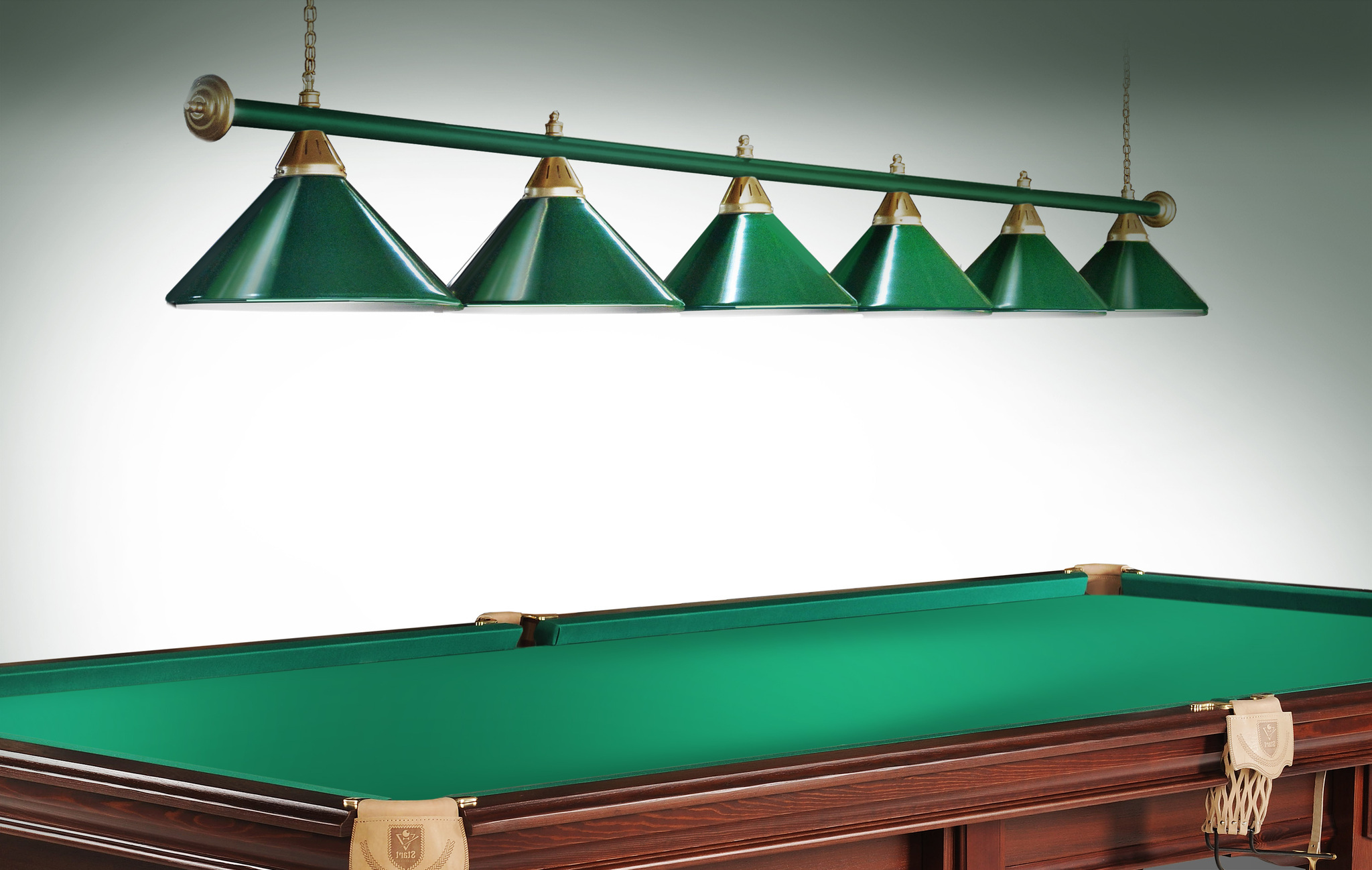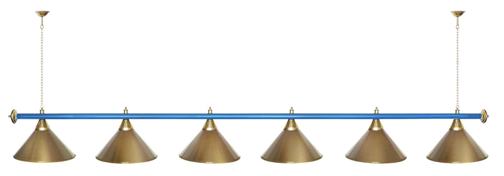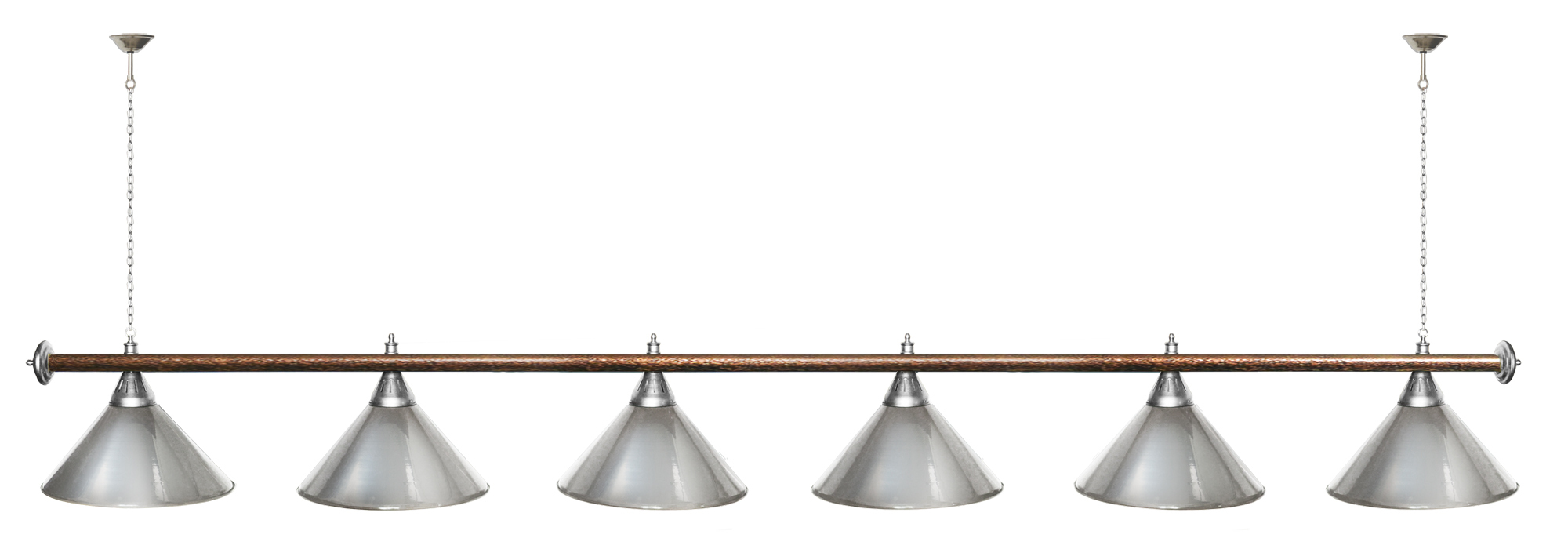 Светильники Startbilliards производства ФС «Горизонт» с 6-ю плафонами комплектуются к столам 12 футов. Укомплектованы цельной металлической штангой с полимерным покрытием. Штанга изготовлена из цельной трубы, что исключает искривление конструкции. Применение керамических патронов #40;Е27#41; увеличивает срок эксплуатации светильника. Металлические плафоны крепятся с помощью зажимных пластин. Длина подвесной цепи 100 см — оптимальное расстояние для расположения источника света над игровым полем стола. В комплект включены две потолочные чашки. Условные схематические обозначения: Н — общая высота светильника / 1420 мм L — общая длина светильника / 2920 мм D — высота плафона / 300 мм d — диаметр плафона / 370 мм C — расстояние между осями / 500 мм Штанга и плафоны поставляются в отдельных упаковках.