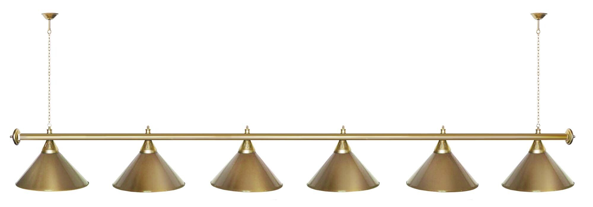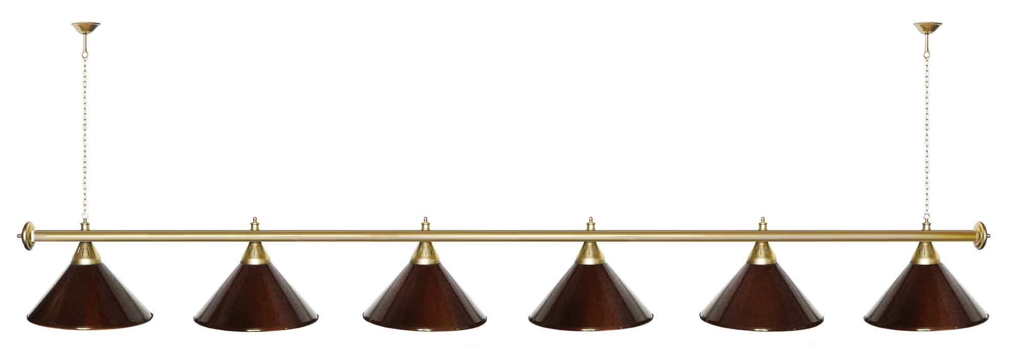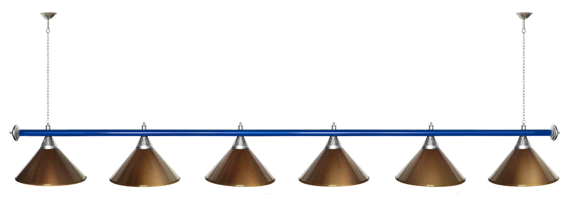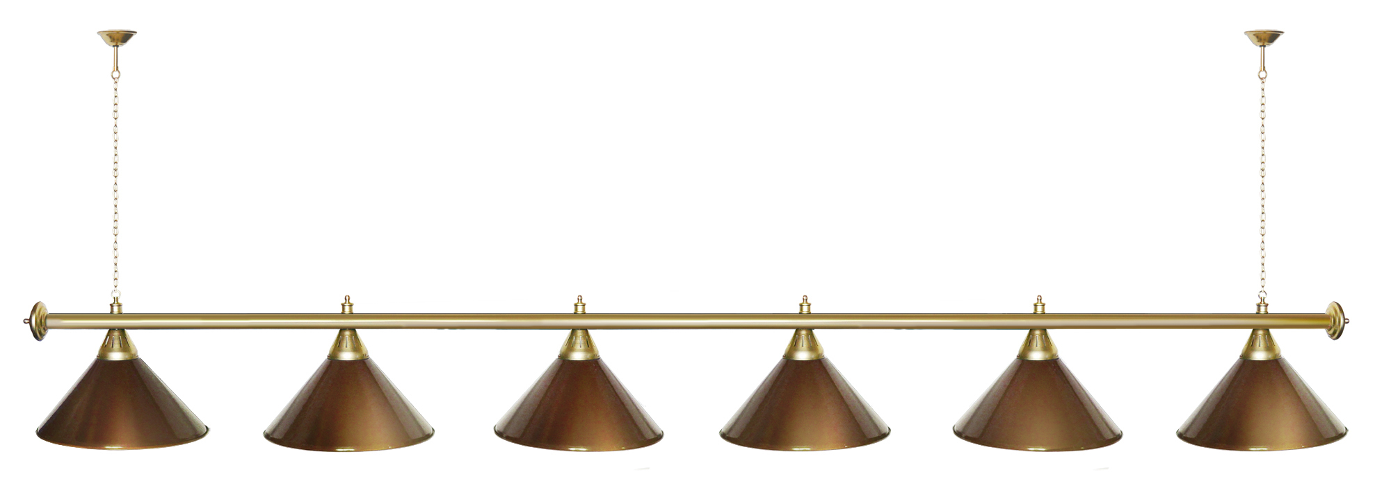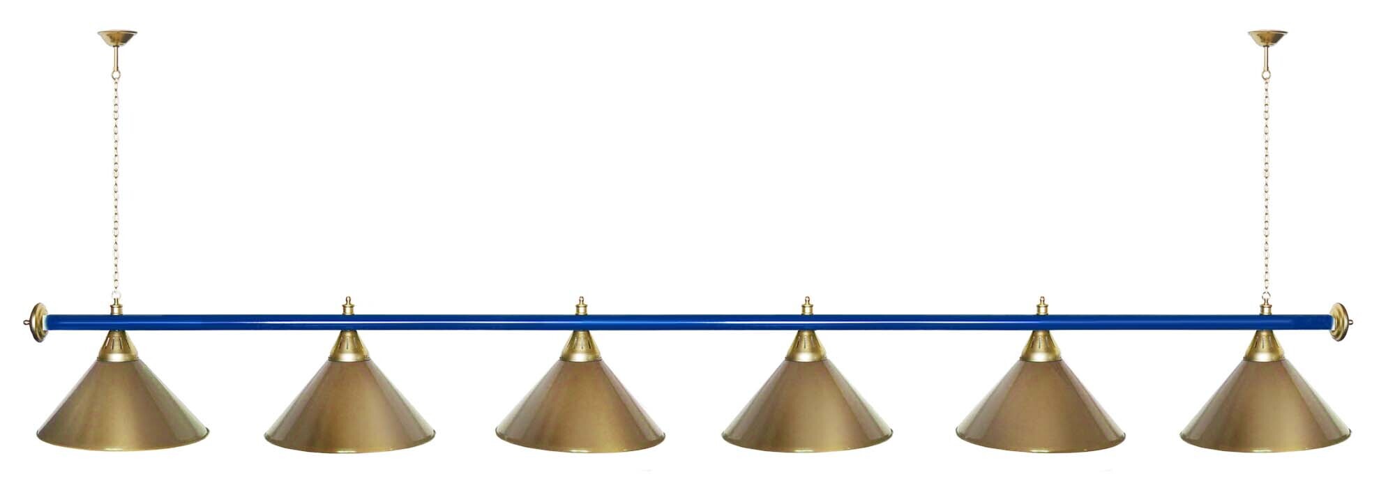 Светильники Startbilliards производства ФС «Горизонт» с 6-ю плафонами комплектуются к столам 12 футов. Укомплектованы цельной металлической штангой с полимерным покрытием. Штанга изготовлена из цельной трубы, что исключает искривление конструкции. Применение керамических патронов #40;Е27#41; увеличивает срок эксплуатации светильника. Металлические плафоны крепятся с помощью зажимных пластин. Длина подвесной цепи 100 см — оптимальное расстояние для расположения источника света над игровым полем стола. В комплект включены две потолочные чашки. Условные схематические обозначения: Н — общая высота светильника / 1420 мм L — общая длина светильника / 2920 мм D — высота плафона / 300 мм d — диаметр плафона / 370 мм C — расстояние между осями / 500 мм Штанга и плафоны поставляются в отдельных упаковках.