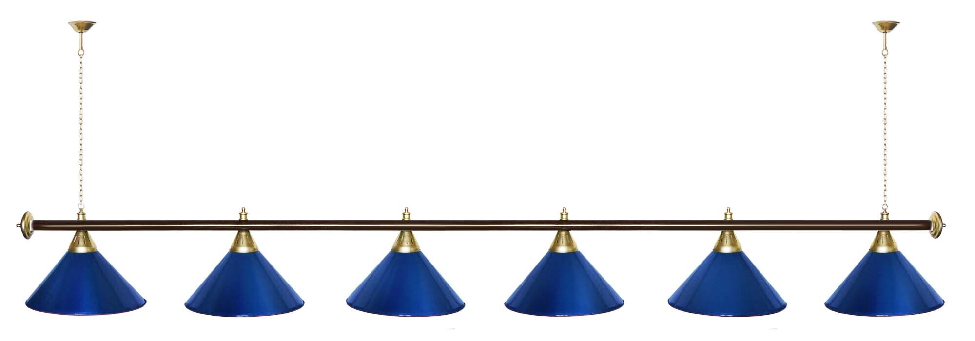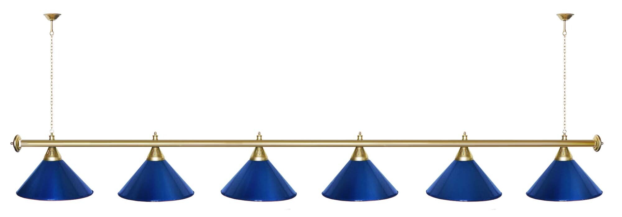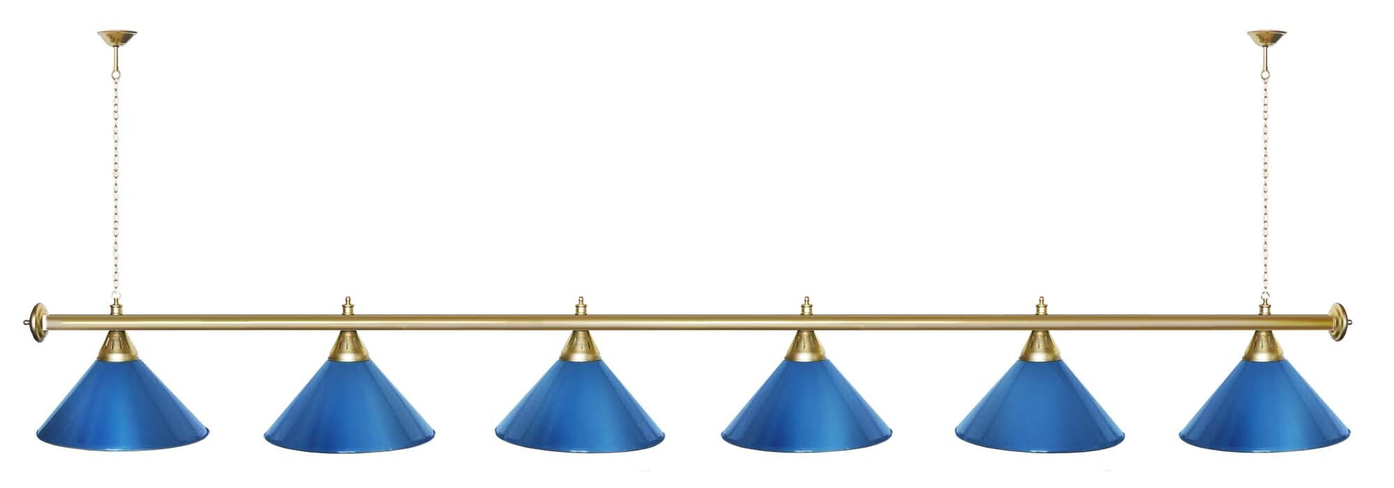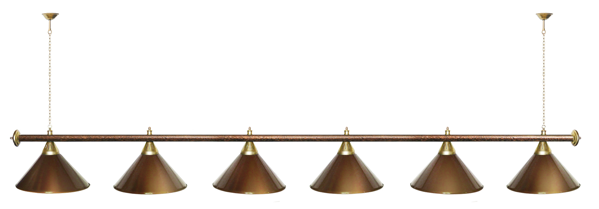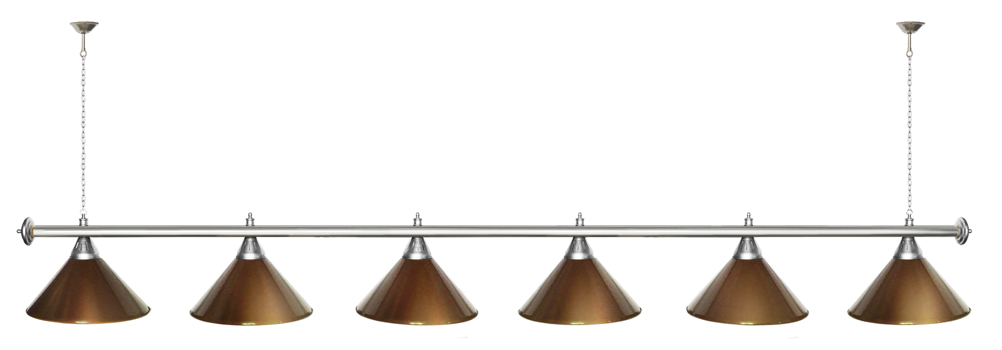 Светильники Startbilliards производства ФС «Горизонт» с 6-ю плафонами комплектуются к столам 12 футов. Укомплектованы цельной металлической штангой с полимерным покрытием. Штанга изготовлена из цельной трубы, что исключает искривление конструкции. Применение керамических патронов #40;Е27#41; увеличивает срок эксплуатации светильника. Металлические плафоны крепятся с помощью зажимных пластин. Длина подвесной цепи 100 см — оптимальное расстояние для расположения источника света над игровым полем стола. В комплект включены две потолочные чашки. Условные схематические обозначения: Н — общая высота светильника / 1420 мм L — общая длина светильника / 2920 мм D — высота плафона / 300 мм d — диаметр плафона / 370 мм C — расстояние между осями / 500 мм Штанга и плафоны поставляются в отдельных упаковках.