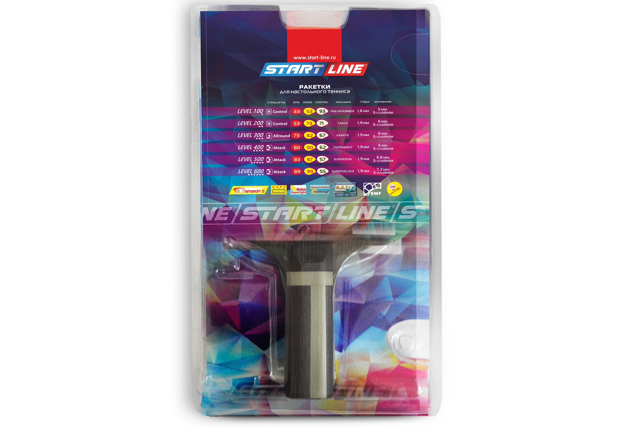 Ракетка для настольного тенниса Level 600 соответствует высокому современному стандарту качества, имеет обновленный дизайн, а также улучшенные технологические и игровые характеристики. В производстве ракеток Level 600 применены новейшие технологии: - Технология натяжения - TR. Tension Il Technology Благодаря применению модифицированных полимерных материалов здесь технология натяжения доведена до совершенства.nbsp;nbsp; При игре резина хорошо поглощает атакующие удары мячей, улучшены внутренняя энергия резины и губки. Ракетка Level 600 отличается высокой скоростью и хорошим вращением. - Технология амортизации - ECDS: EVA Clustered Damping System Данная система представляет собой дополнительный резиновый слой, заложенный в конструкции ручки до основания ракетки. Применение этой технологии несет функцию сбора энергии и снижения вибрации, обеспечивает хороший контроль игры. - Технология снижения веса -Balsa Super Light. Эта технология работает на уменьшение веса ракетки для получения экстремально быстрой скорости касания мяча. - Технология дерева - BalsaCARBO Technology. Технология содержания двух слоев из бальзы и карбона, придает ракетке высокую скорость, эластичность и легкость. - Технология поглощения - Gecko Adsorption Technology Эту технологию применяют при производстве резиновой поверхности ракетки. Так, на самой поверхности резины образуется множество выходных отверстие #40;как губка#41;, которые позволяют задержать мяч на резине. Благодаря этой технологии можно свободно контролировать мяч, его скорость и вращение. - Технология симметрии - Symmetrical Microcellular Foam Technology Благодаряnbsp;nbsp;применению симметричного мелкопористого пенопласта, ракетка отличается эластичностью, легкостью и хорошим энергопоглощением.