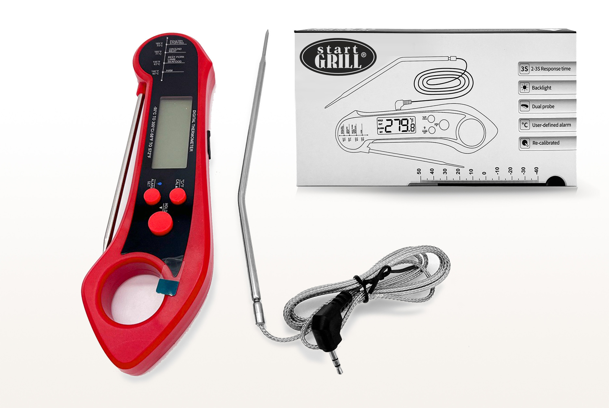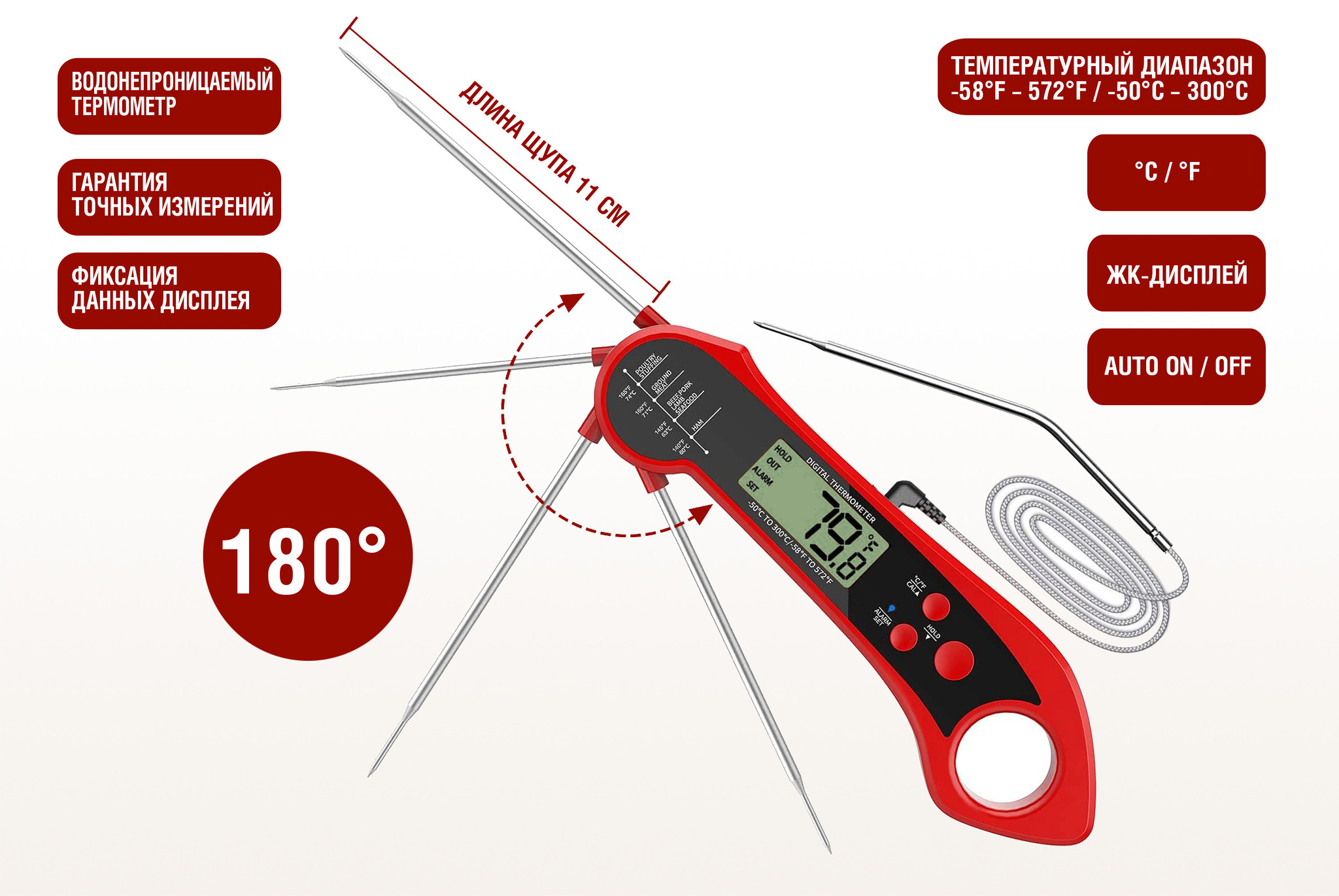 Цифровой термометр Model 2, складной, с дополнительным подключаемым щупом, красный